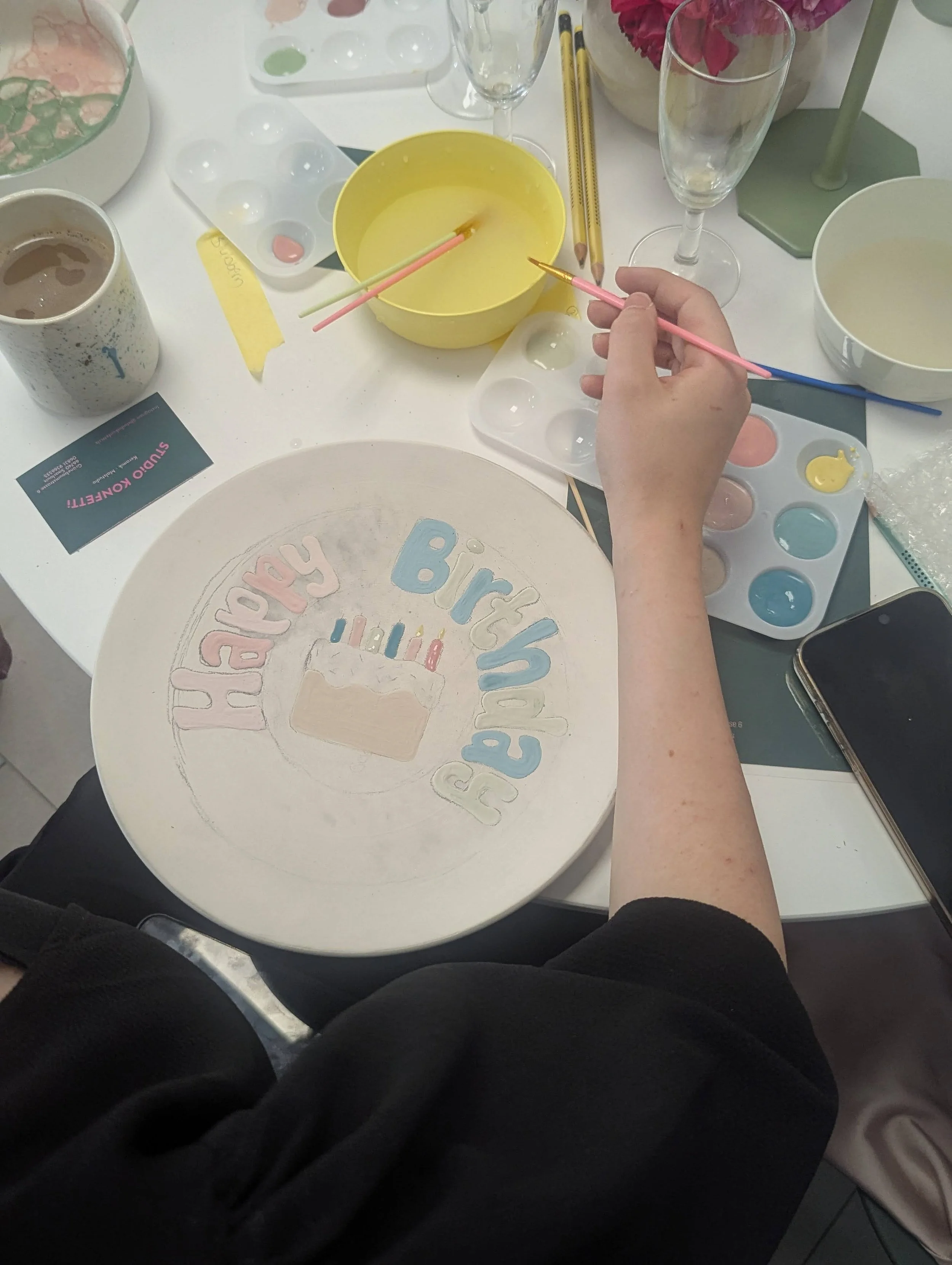 Feiern Sie Ihren Geburtstag im Keramikmalstudio Studio Konfetti! Ob mit Freunden, Familie oder Kindern – bei uns wird jeder Tag zu einem kreativen Erlebnis voller Spaß und unvergesslicher Erinnerungen. Für Geburtstagesfeiern ab 7 Personen, kommt eine einmalige Service Pauschale von 30 Euro hinzu.